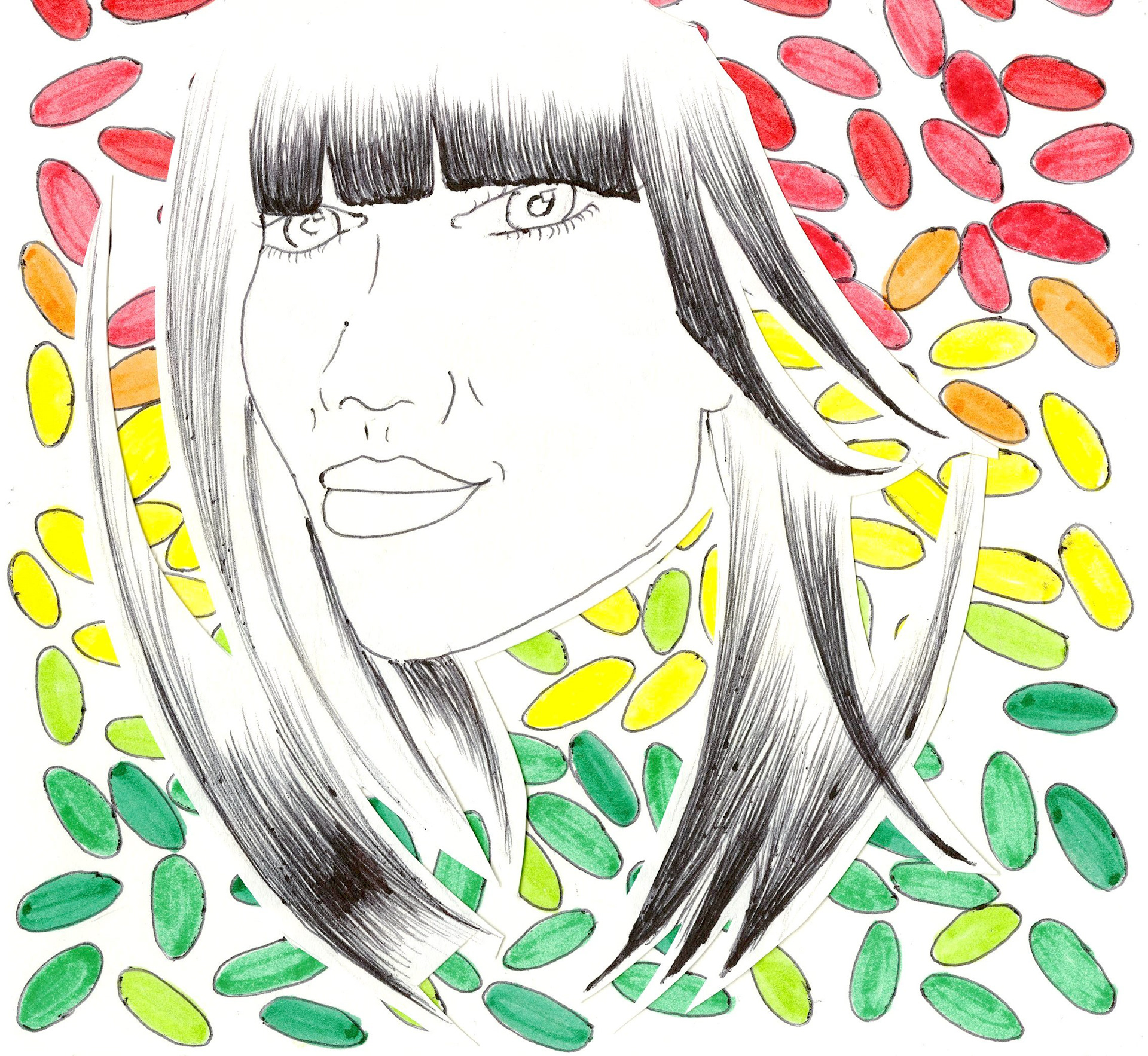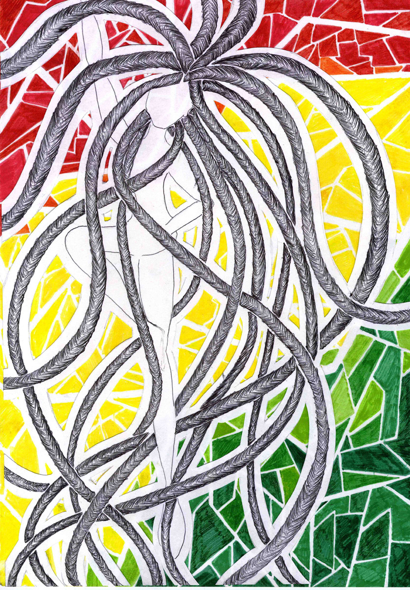 Black Hair - Red, Gold, Green